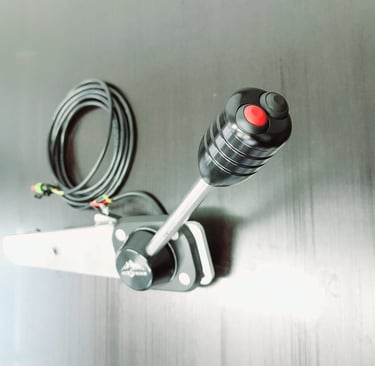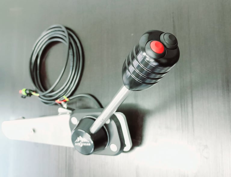 Machined into our manual reverse control lever we have 2x buttons to control the trim nozzle so your left hand never needs to shift between controls, freeing up cockpit space and shifting the needle on river boat safety with the optional auto up function when engaging reverse.